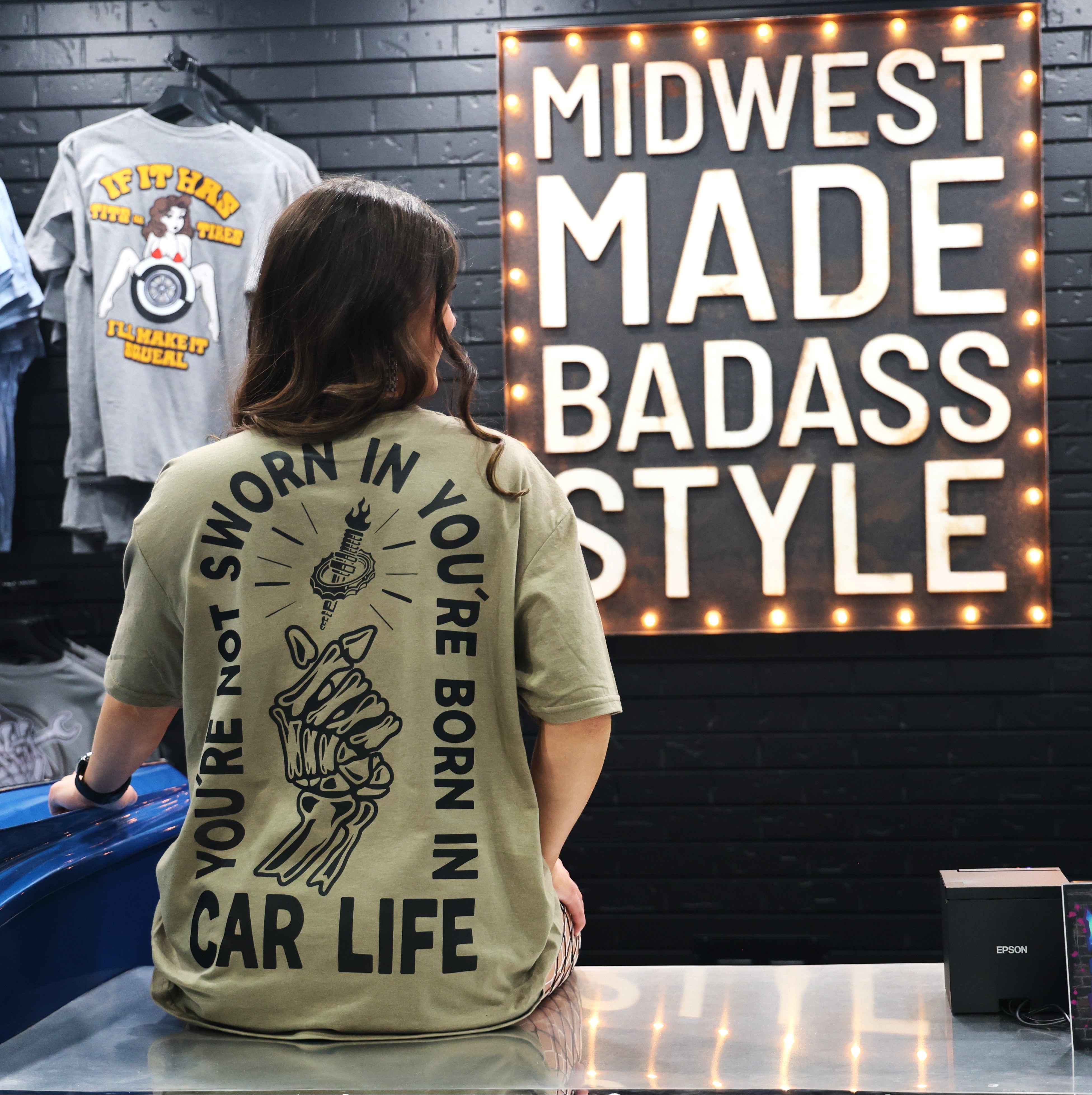 You weren’t sworn into this chaos—you were born in it. Our Car Life Tee is for the unapologetic grease junkies who don’t need permission to live loud. On the front, a clean “Threads by Revheads” logo sits over your heart, because loyalty runs deeper than octane. On the back, it spells it out for every poser in your rearview: “You’re Not Sworn In You’re Born In Car Life.” Available in moody green, this shirt is soft enough to sleep in but tough enough to survive beer spills, burnout smoke, and your questionable life choices. Wear it like a middle finger to anyone who doesn’t get it.
