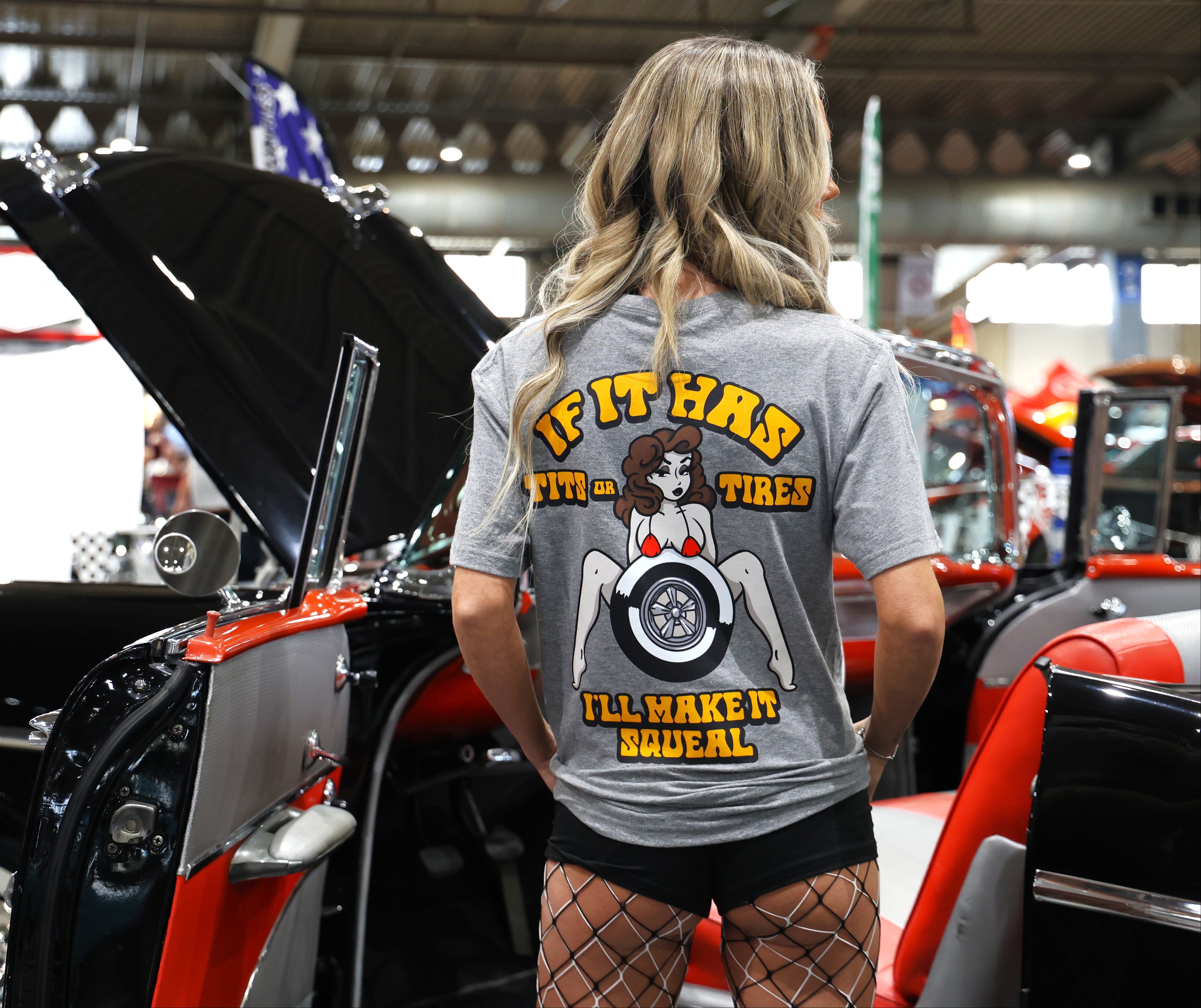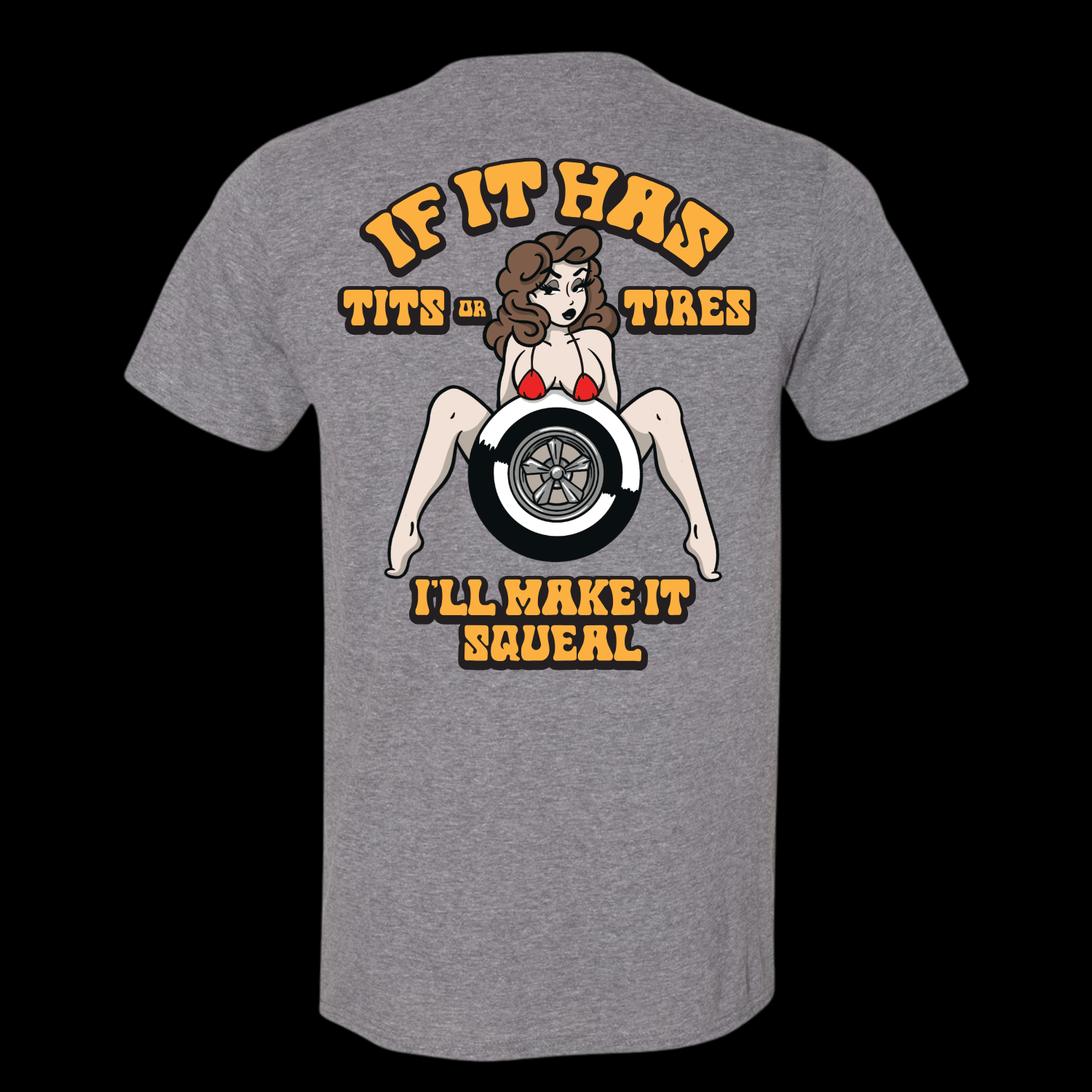 If it has tits or tires, you already know where your attention’s going — and this tee isn’t shy about it. The Tits or Tires Tee is pure garage humor with zero corporate filter, built for the crowd that grew up around dirty jokes, loud engines, and unapologetic car culture. The bold back graphic throws a cheeky pin-up and a screaming tire front and center with a line that says exactly what everyone’s thinking but won’t say out loud. Clean Revheads hit on the chest, chaos on the back, and absolutely no interest in being politically correct. This is for show nights, burnout pits, and people who think modern car culture’s gotten a little too tame. If you’ve got the confidence to wear it, you’re probably our kind of people — if not, there are safer shirts out there. This one’s meant to make a little noise.